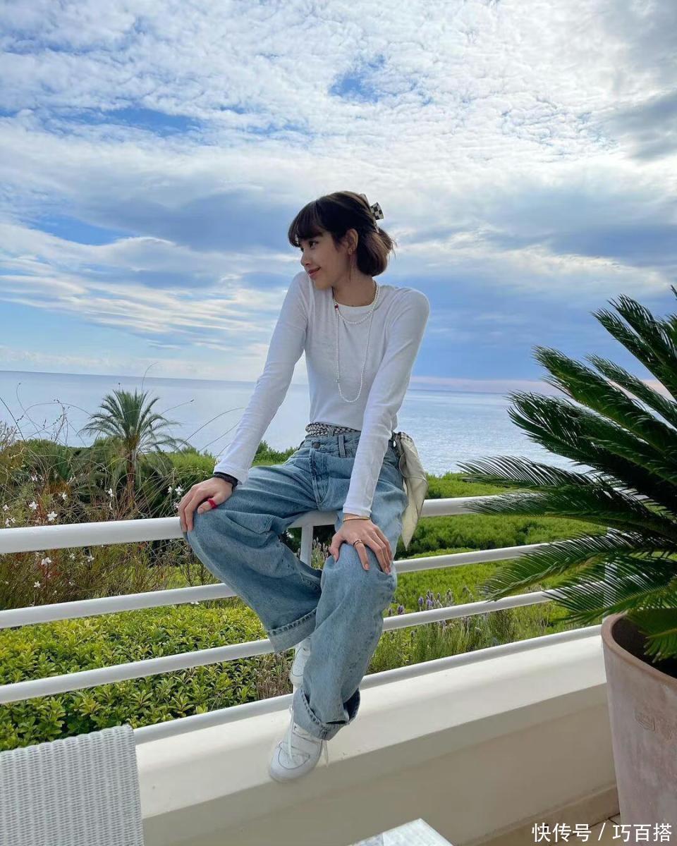 假期旅游穿搭中也少不了牛仔裤,大家可以像Lisa一样选择高腰宽松直筒牛仔裤,简单利落又有性价比,遮肉显瘦又能提亮整体色调。