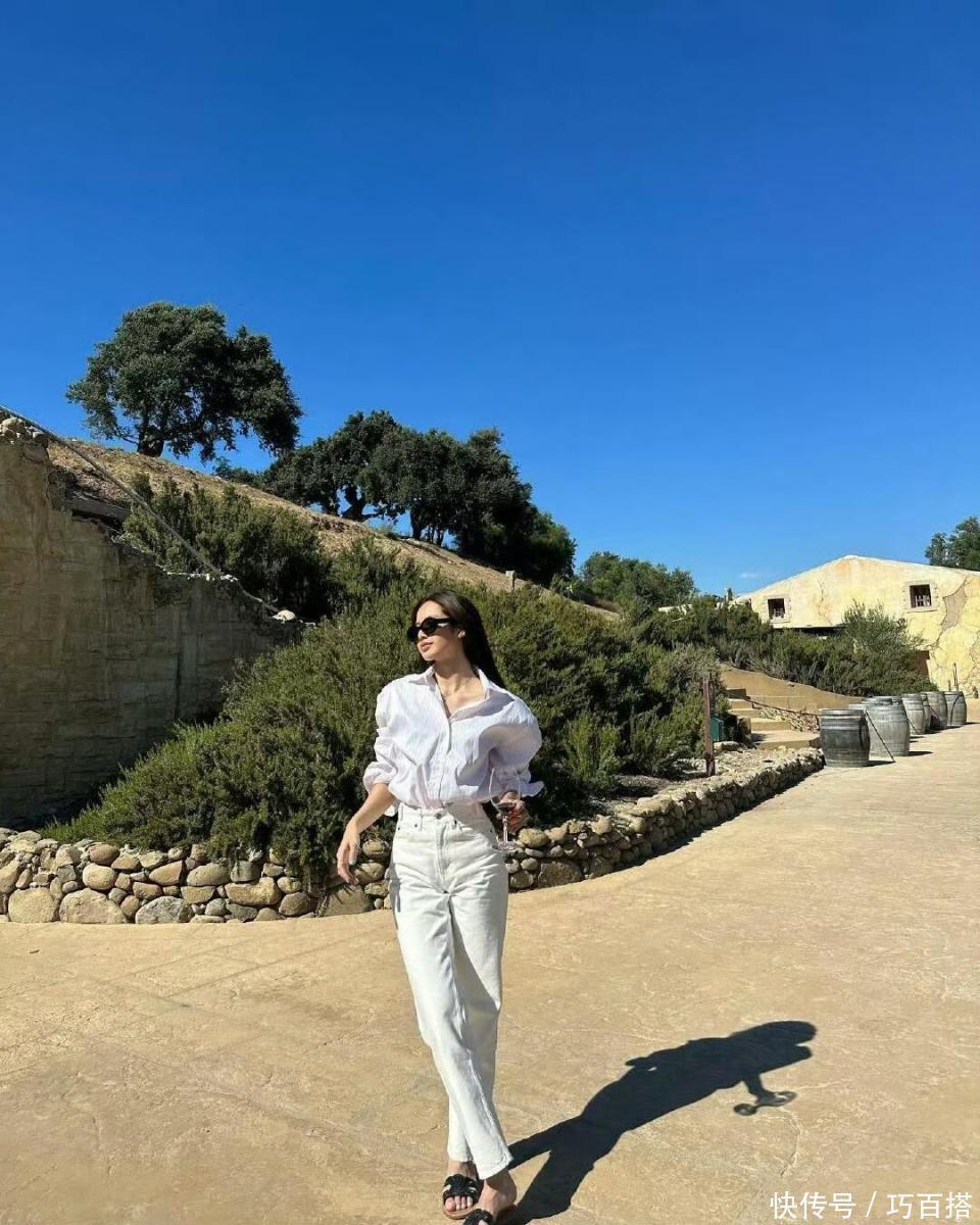 白衬衫搭配白裤子特别出片,无论是现代化城市还是大自然,它都能轻松出片,要质感有质感、要氛围有氛围,对任何姐妹来说都值得一试。